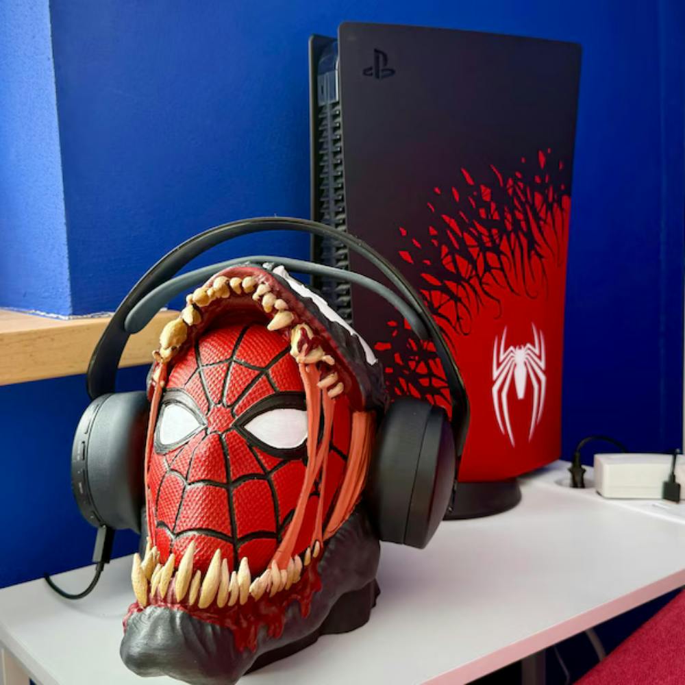 Give him a Christmas gift that instantly upgrades his desk. This Venom × Spider-Man Headphone Stand combines two iconic Marvel characters in one bold, eye catching design. Crafted with detailed 3D printing and hand-finished coloring, each piece feels unique and premium. It’s not only a striking collectible but also a practical stand that keeps his headphones organized and protected.